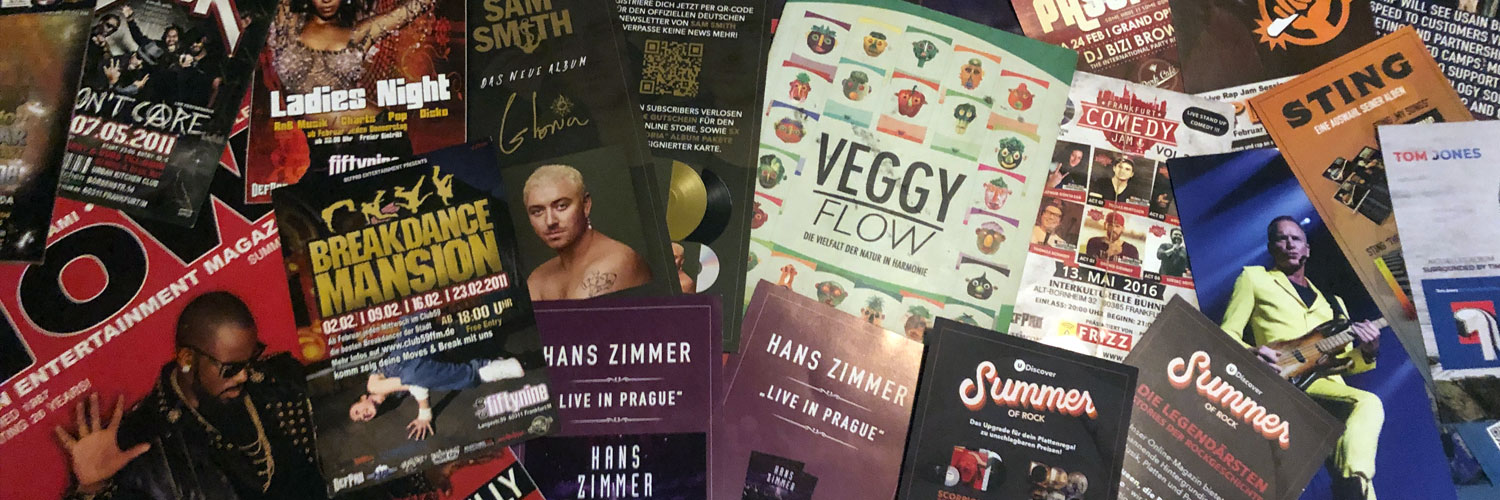 Nachdem ich bereits für Universal Music Veranstaltungen durchgeführt hatte, bekam ich die Chance auch für die Marketing Abteilung zu gestalten. Hin und wieder kriege ich weitere Orders, hier sind einige arbeiten.